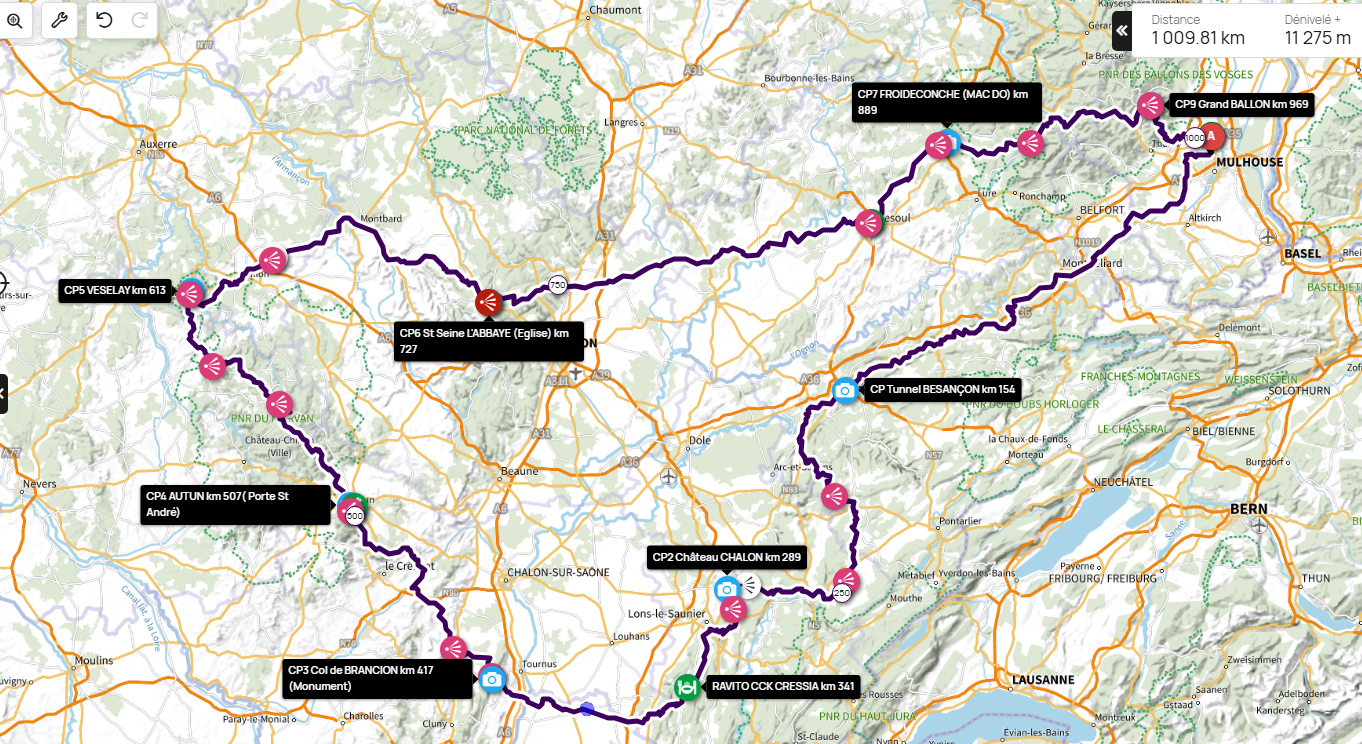 Un Brevet CCK de 1000 km "co-organisé" avec le Club " VESOUL VTT" via DOMIMINIQUE MYOTTE DUQUET Pré-qualificatif bien sur pour le PBP 2027